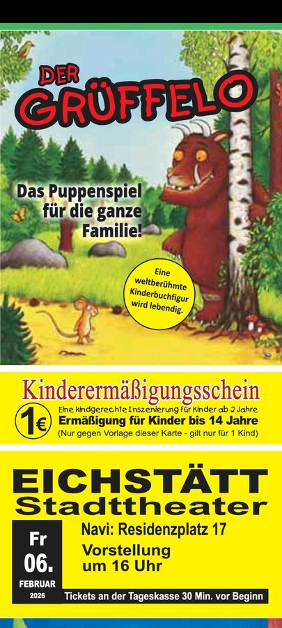 | Zeit: | 16:00 Uhr Kartenverkauf 30 Minuten vor Spielbeginn | Keine EC-Kartenzahlung | Programm 1 Stunde inkl. 5 Minuten Pause |